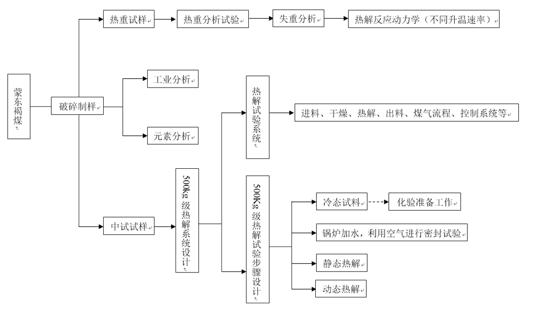 论文题目:回转窑式蒙东褐煤中温热解的试验研究 论文作者:张勇刚 论文时间:2015年6月 论文摘要: 本文简单讲述了我国低阶煤的资源概况,随着采矿技术的不断提升和新型煤矿的增加,低阶煤的产量也将直线上升。掌握低阶煤的地域分布,研究新型的利用低阶煤的技术,减少燃煤对大气的污染,从而改善劣质煤现状。同时介绍了目前我国关于低阶煤的几种清洁利用的方法。 根据蒙东能源集团的实际情况,为解决当地闲置的褐煤资源提出切实可行的方法,课题组已经进行了低阶煤间接热解气化提质技术过程中热管的优化选型,已建成一套20kg级电热管式流化床低阶煤气化小试系统。依据已有的数据和相关结论,通过采用热重分析仪研究了蒙东褐煤在不同升温速率(5℃/min、10℃/min、15℃/min)的热解特性,结果显示升温速率越大(即15℃/min时),蒙东褐煤的热解特性越好。 我们还建设了500kg级回转窑式中温热解的试验装置,设计了实验步骤,但由于时间有限,我们只进行了初步点火实验,结果表明采用热管进行热量的传递这种方式是可行有效的,同时对某些部件提出了改进的方法,为今后的实现大型工业化奠定了基础。